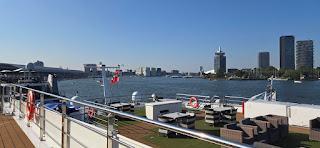 We all cleared customs and grabbed our bags for the bus ride into town. The Emerald/Mayflower cruise ship was parked east of Centraal Station.